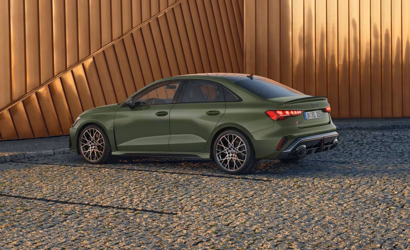 El nuevo Audi RS 3 Sedan2 muestra su extrema deportividad desde todos los ángulos. Y es que los elementos exteriores RS en carbono/negro mate4 y el paquete de óptica negro plus subrayan su carácter único.
